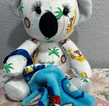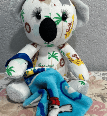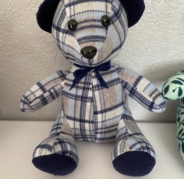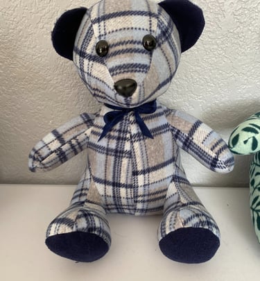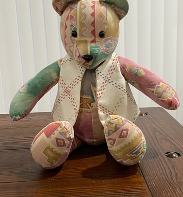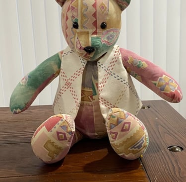 Holding my grandma's quilt bear feels like a warm hug from her every day.